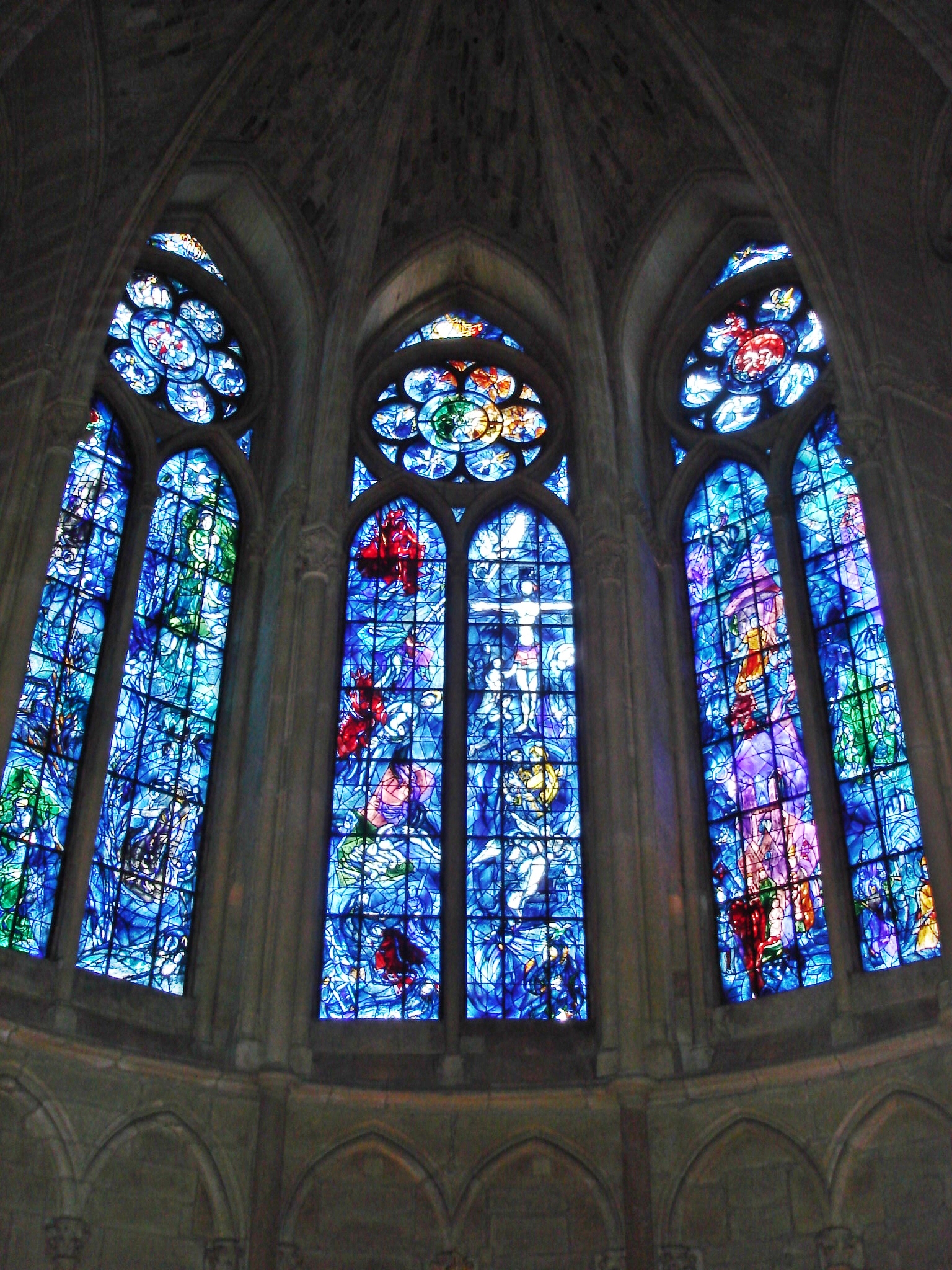 “Using the medium of stained glass, he produced windows for the cathedrals of Reims and Metz, windows for the UN, and the Jerusalem Windows in Israel. He also did large-scale paintings, including part of the ceiling of the Paris Opéra.”